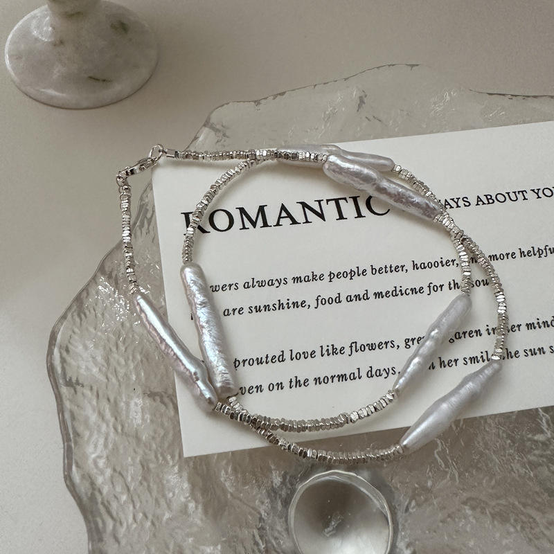 Collar de perlas de plata de ley S925 estilo coreano japonés sensación fresca cuadrado apilamiento clavícula diseño nicho colección joyería