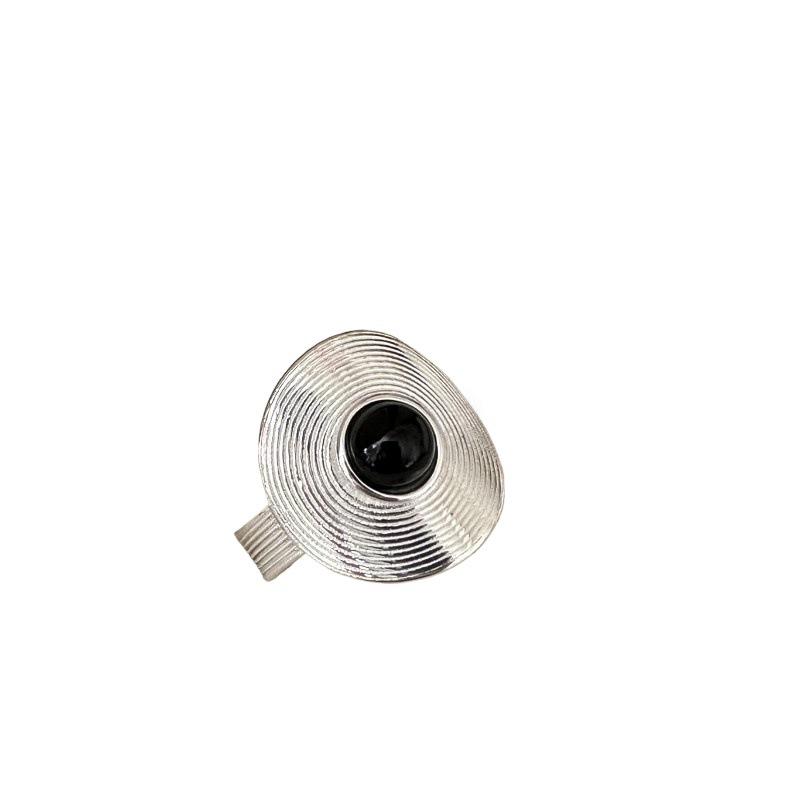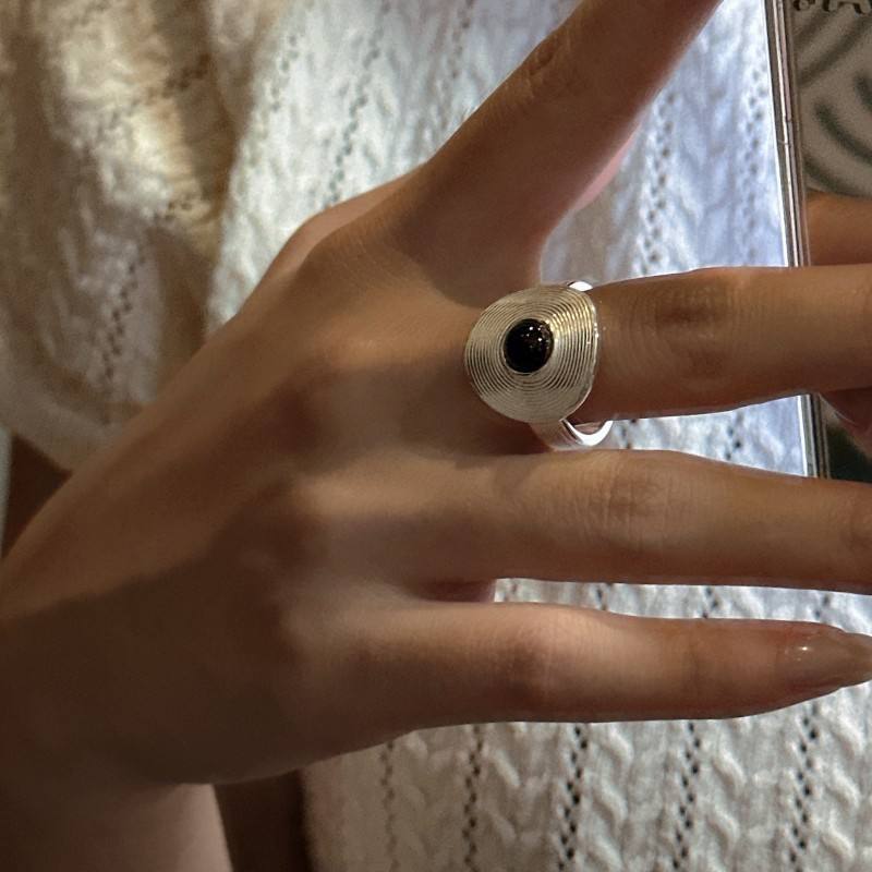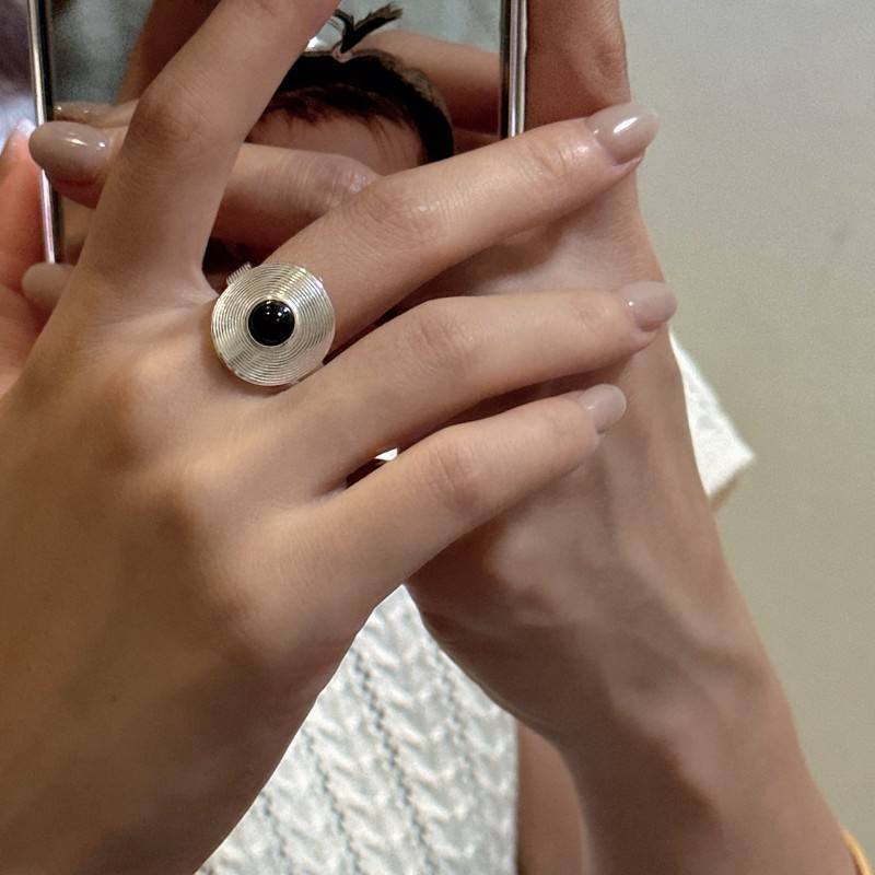 Anillo redondo de estilo Retro coreano con diamantes de corte princesa de plata de ley S925 con pendientes de ágata negra diseño de nicho