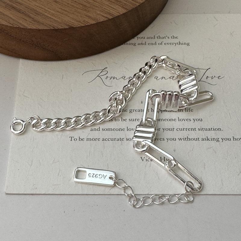 Pulsera Retro de plata de ley S925, estilo coreano, joyería de cadena fina Retro Simple con nudo de diseño de nicho