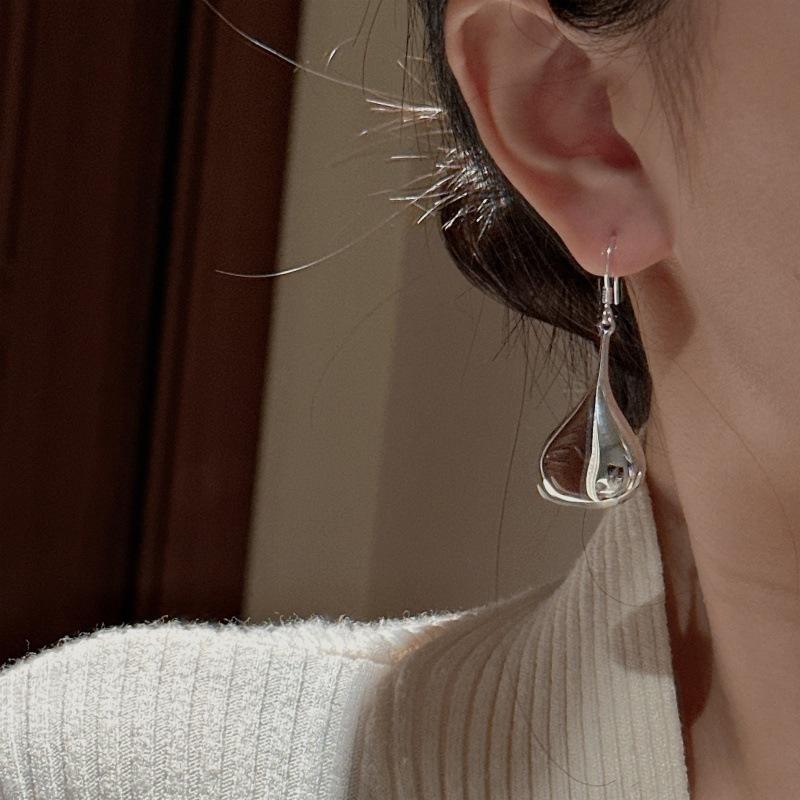 Pendientes de gota de agua de estilo coreano Retro de plata de ley S925, joyería de oreja Retro Vintage, venta al por mayor, Diseño Artesanal hueco, nicho elegante