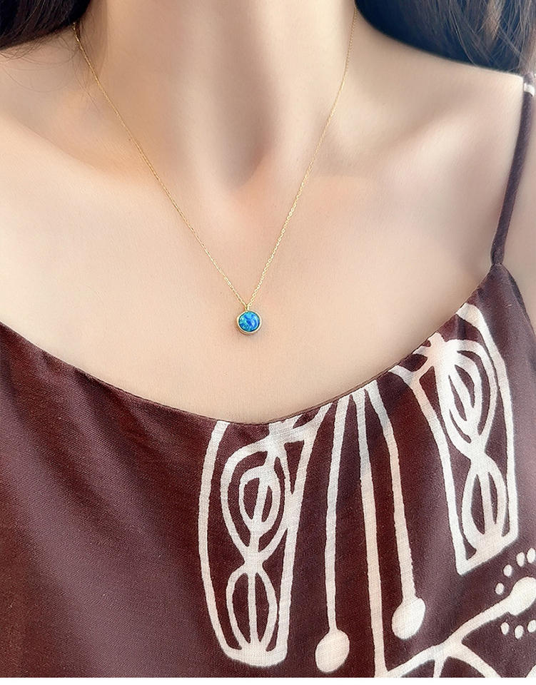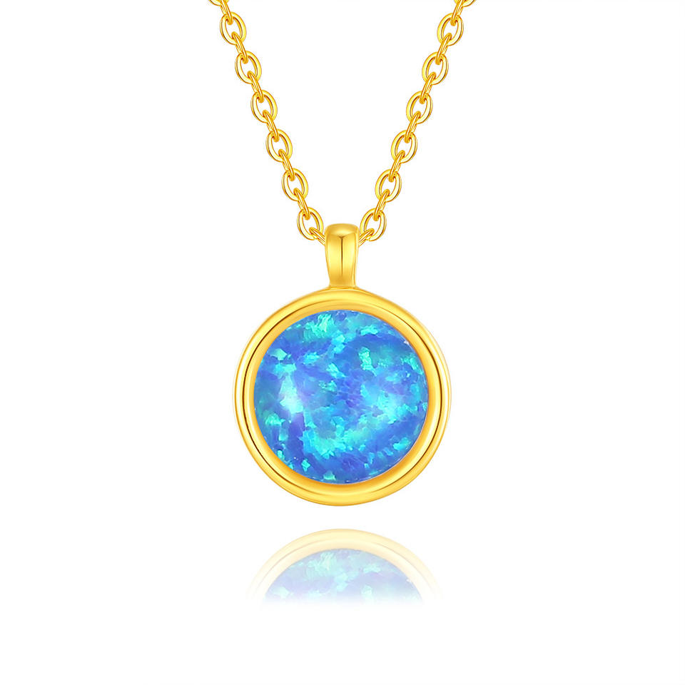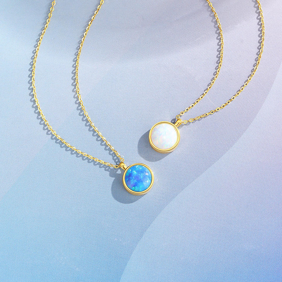 Collar con Colgante de Ópalo Azul Chapado en Rodio de Plata de Ley S925, con Borde de Cuerda Delicado, Joyería Vintage de Moda para Compromiso y Boda