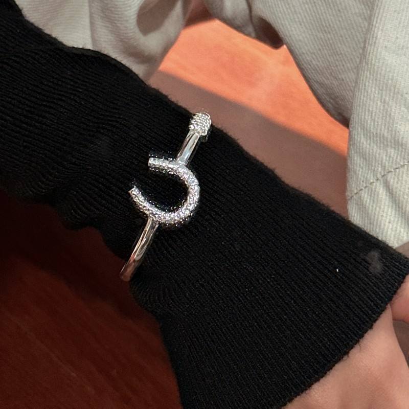 S925 plata esterlina estilo Retro Simple en forma de U pulsera de herradura versión coreana básica joyería de moda con cuentas para venta al por mayor