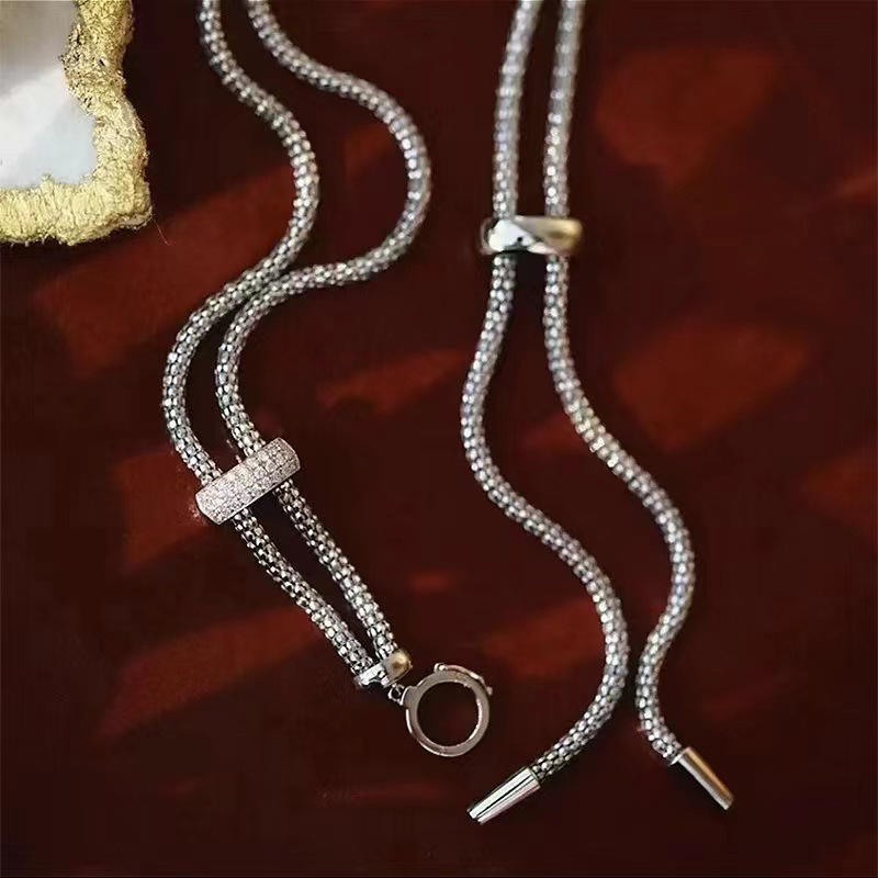 Collar de Plata de Ley S925 con un Solo Diamante, Cadena de Clavícula Súper Delgada con Hilo Invisible, Encanto Femenino
