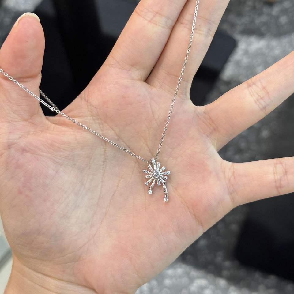 Collar de Plata de Ley S925 con Borla de Perlas de Copo de Nieve Brillante, Cadena Delicada para Clavícula, Patrón Geométrico Azul Blanco