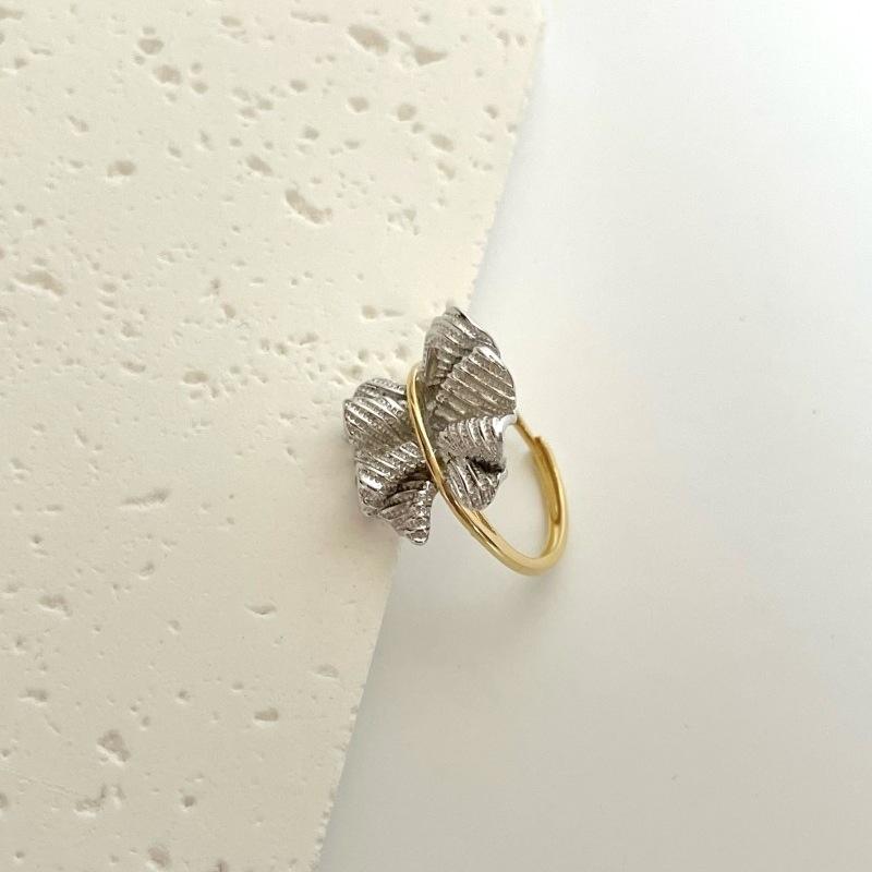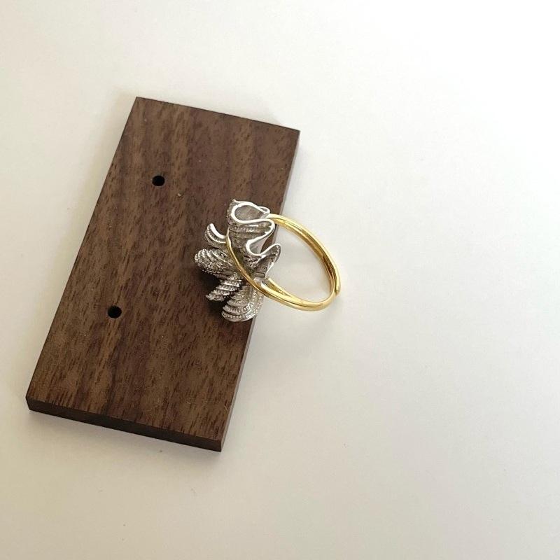 Anillo de Plata de Ley S925 para el Dedo Índice, Estilo Vintage, con Diseño Irregular de Pétalos, Plisado, con Baño de Oro de 18K, Color Antiguo, Personalidad Vintage