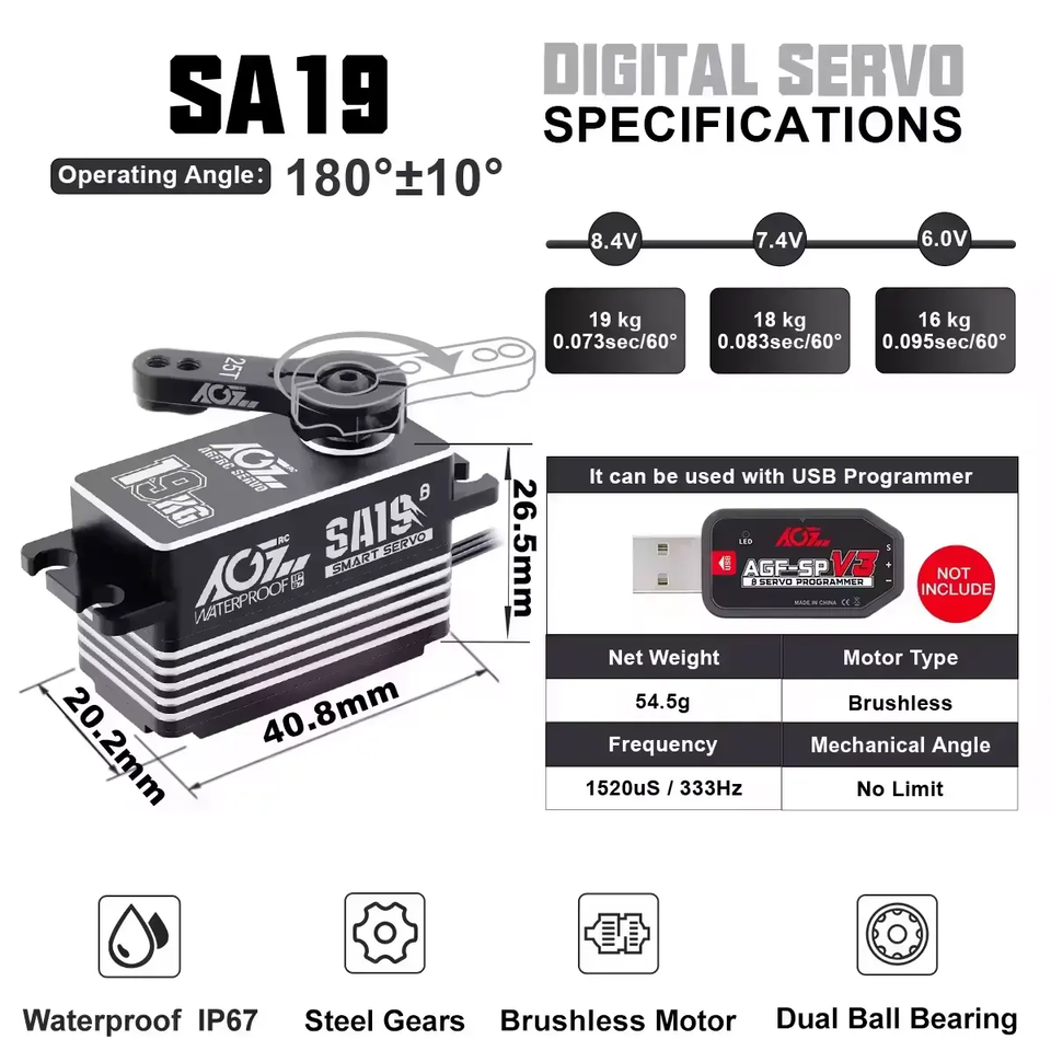 Motor Inteligente BLS Programable de Bajo Perfil SA19 19KG 0.11S de Alta Velocidad 2S HV con Giro de 360 Grados para Piezas de RC
