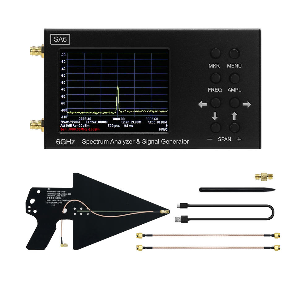 Analizador de Espectro RF SA6 35MHz-6200MHz, Multímetro RF, Explorador de Espectro + Antena Logarítmica Periódica HT6