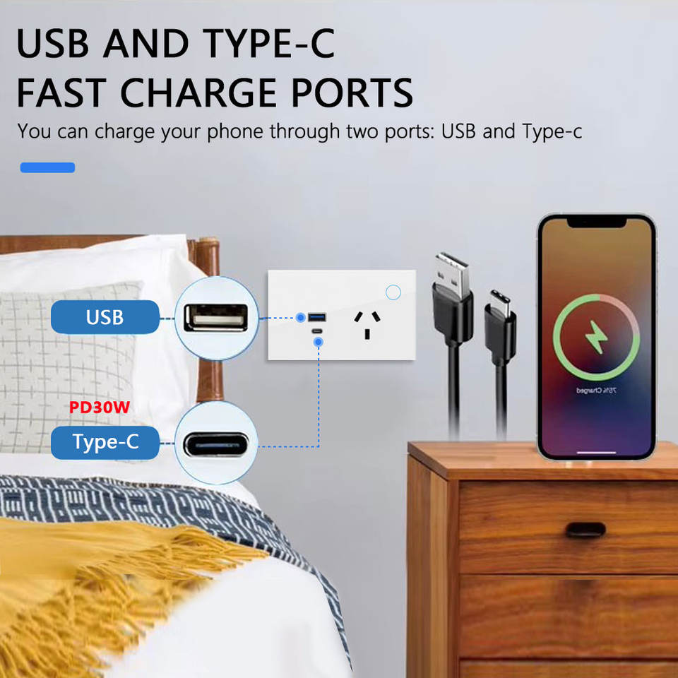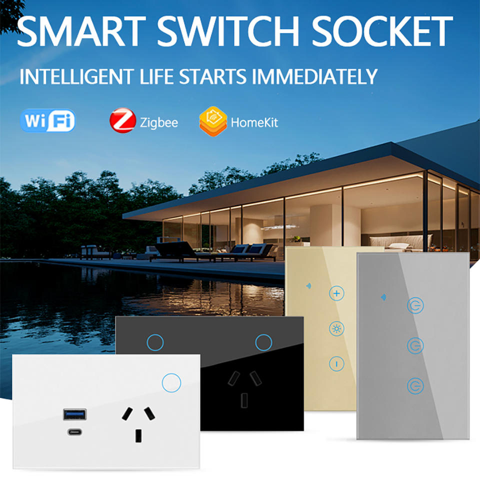 Interruptor inteligente SAA Australia, punto de alimentación con USB tipo C, interruptor de pared, compatible con Wifi/Zigbee/Homekit/Tuya, aplicación Smart Home