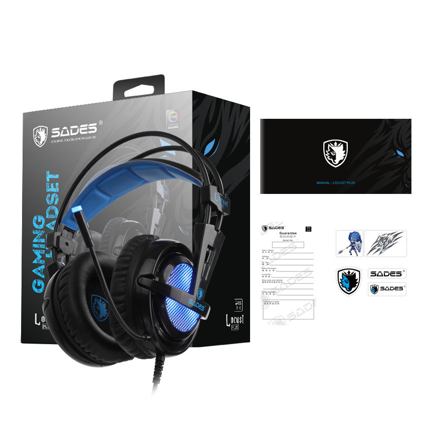 SADES Locust Plus Over-Ear Wired Rgb Micrófono Sonido envolvente Auriculares para juegos