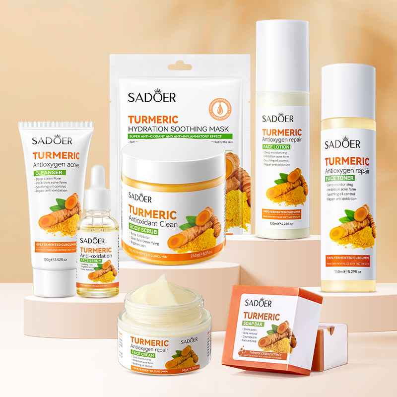 SADOER Limpiador de cúrcuma Espuma facial natural Juego para el cuidado de la piel Control de aceite Acné Blanqueamiento Facial Cúrcuma Limpiador de lavado de cara