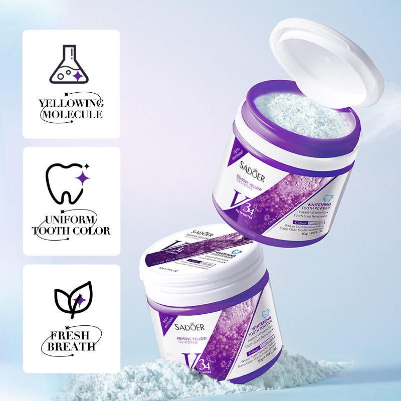 SADOER V34, polvo de pasta de dientes de menta, limpieza bucal, eliminación de manchas, polvo de limpieza de dientes refrescante, polvo blanqueador de dientes