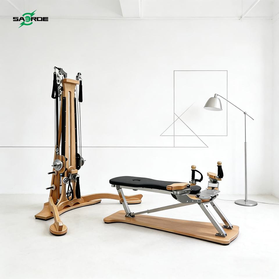 Máquina de Pilates Reformer de Madera Duradera de Segunda Generación SAERDE Combo Training con Torre de Poleas Giratorias para Moldear el Cuerpo