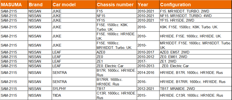 | NISSAN | JUKE Van | 2013.03-2019.12 | CVTC (86KW,117PS) |