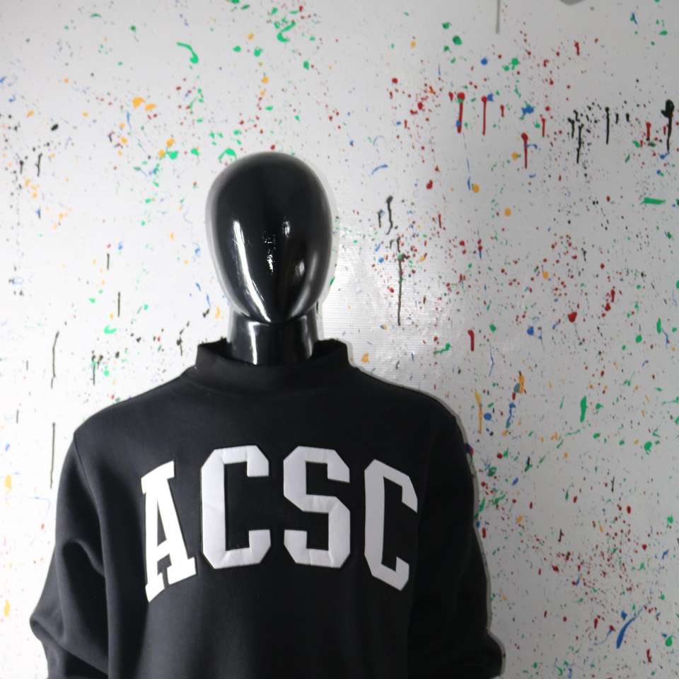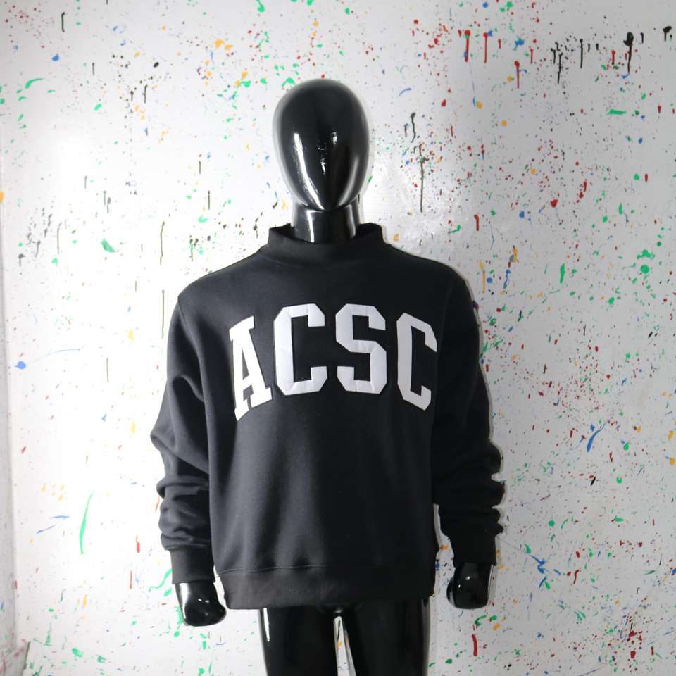Sudadera ACSC BLACK con cuello alto, 100% BLANCA, con apliques bordados, cuello ancho, hilos finos
