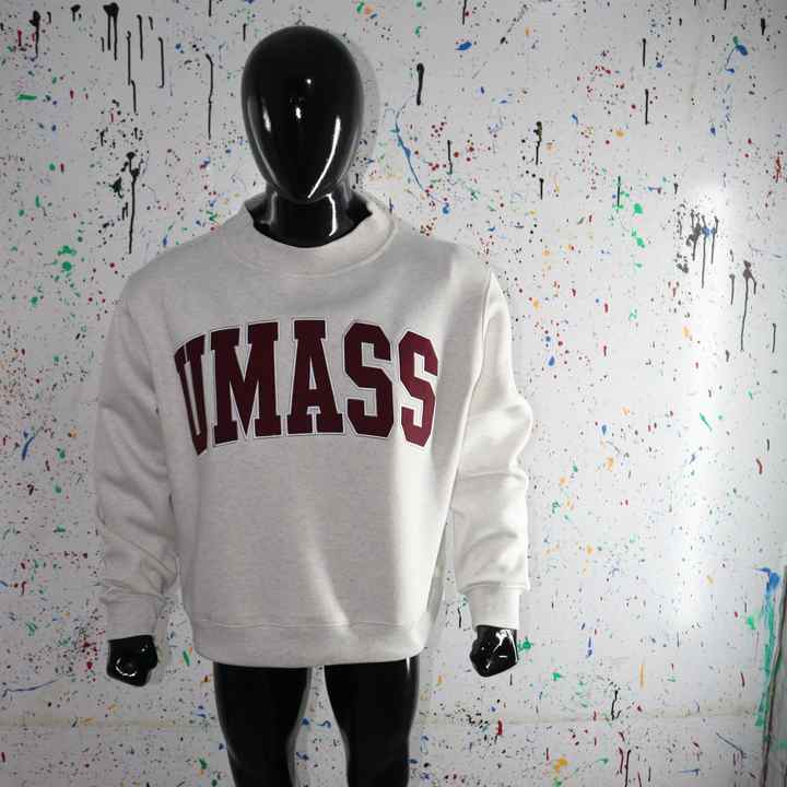 Sudadera UMASS ASH GREY con cuello alto, 100% algodón, con apliques bordados en color marrón, cuello ancho, CLUSH SPORTS