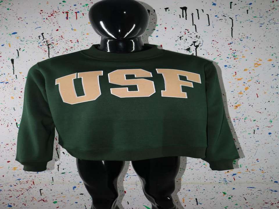 Sudadera USF Verde Claro con Cuello Alto, 100% Algodón, Apliques Bordados, Cuello Ancho, CLUSH SPORTS
