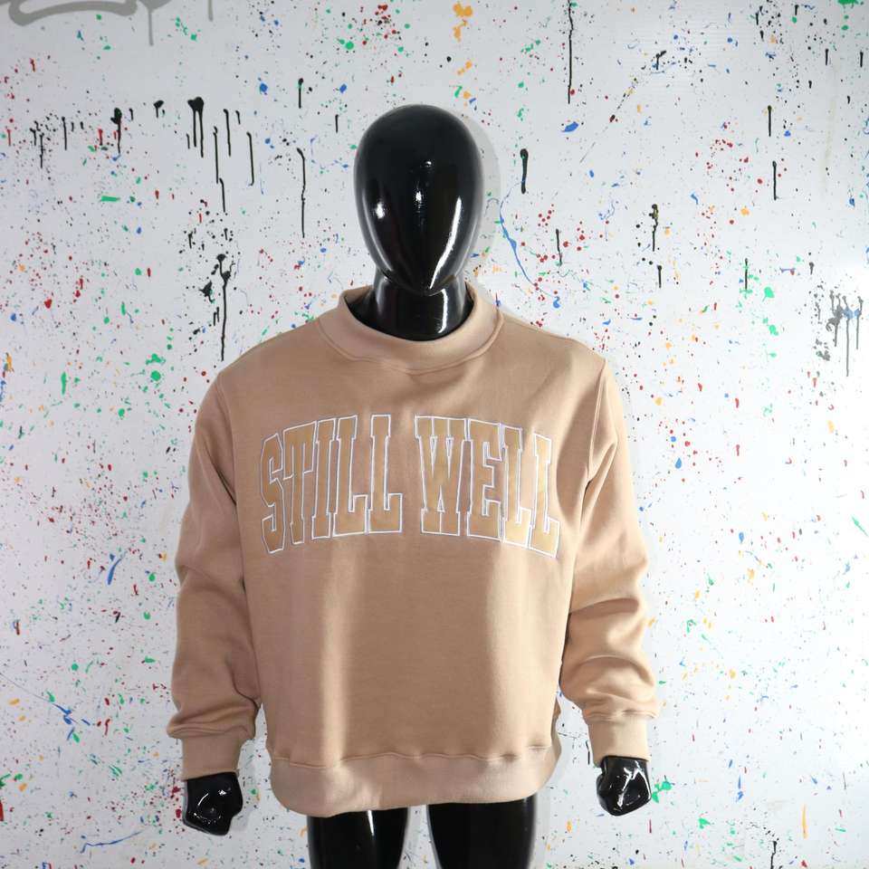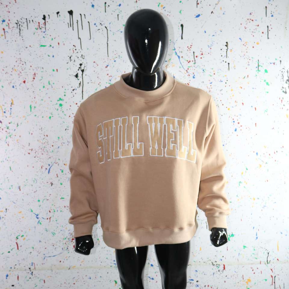 Sudadera de cuello alto STILL WELL SAND con apliques bordados, sudadera de cuello ancho URBAN PRODUCTIONS