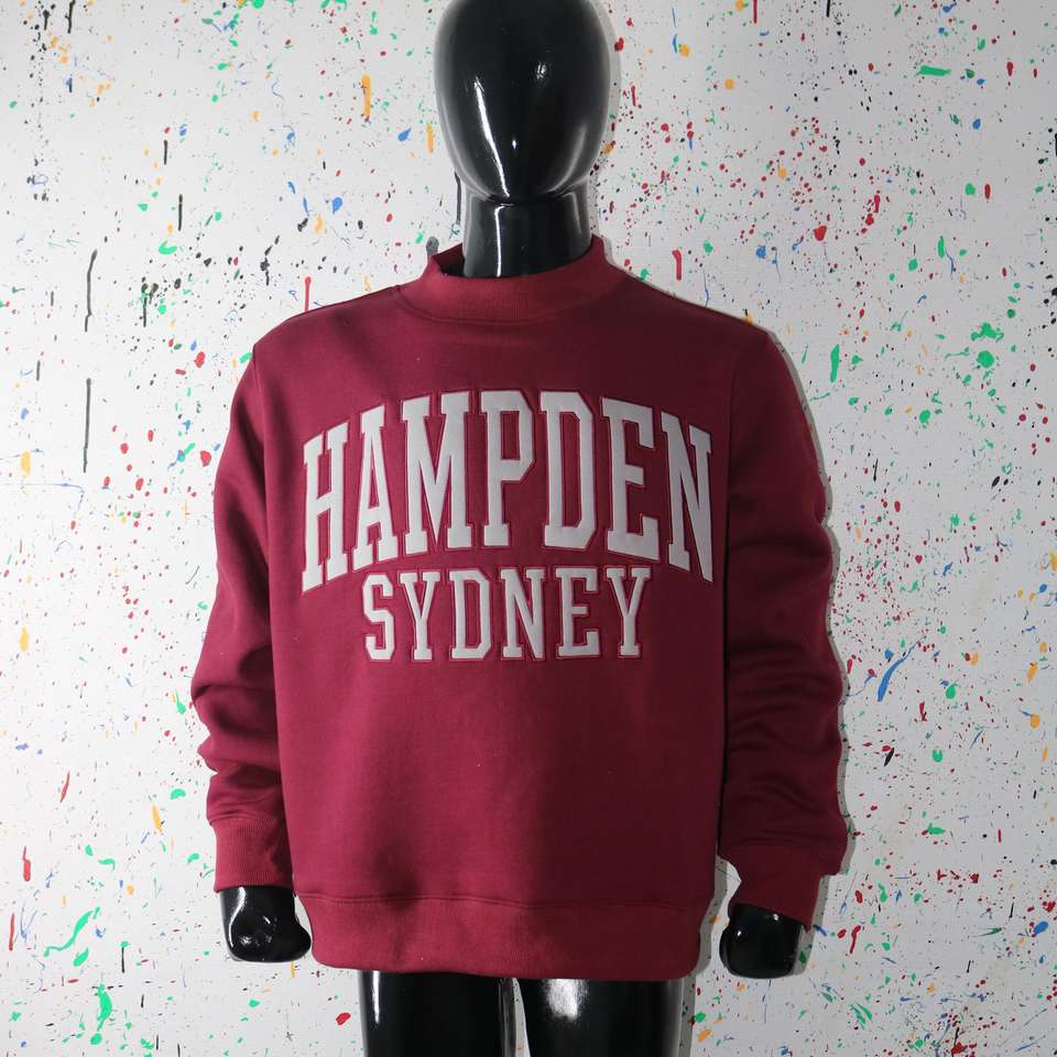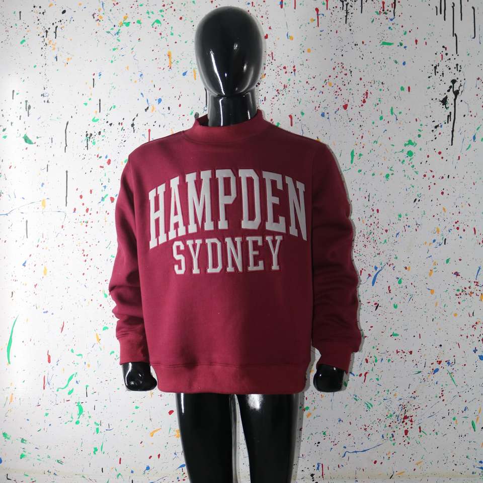 Sudadera HAMPDEN SYDNEY BROWN con cuello alto, 100% gris, con apliques bordados, cuello ancho, CLUSH SPORTS