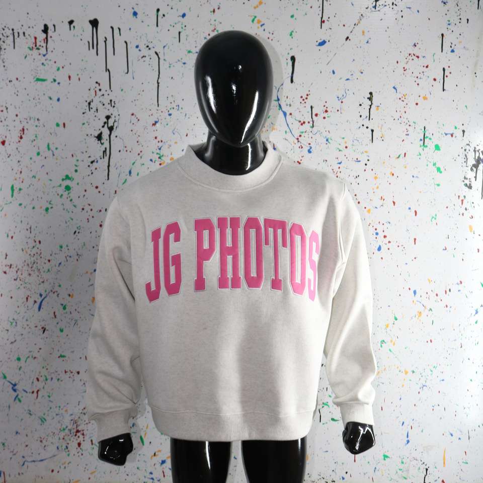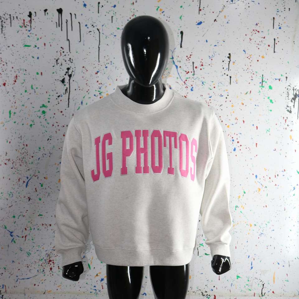 Sudadera JG PHOTOS WHITE con cuello alto 100% algodón ROSA con apliques bordados y cuello ancho URBAN PRODUCTIONS