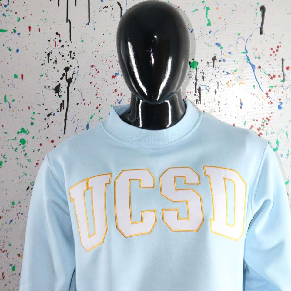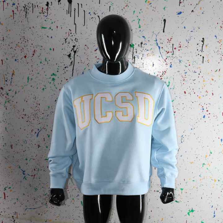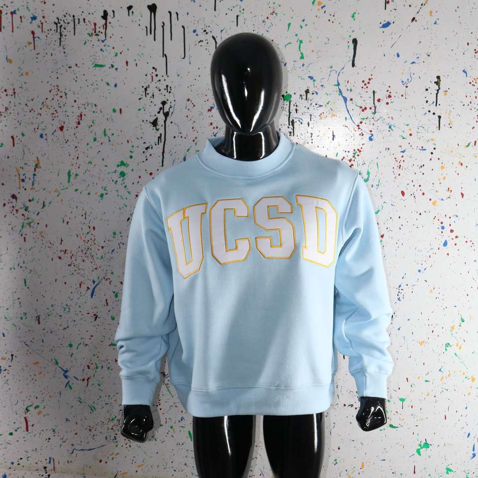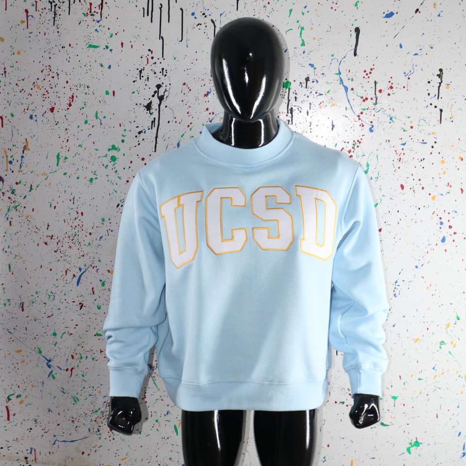 Sudadera UCSD Azul Cielo con Cuello Alto, 100% Blanca, con Apliques Bordados, Cuello Ancho, CLUSH SPORTS