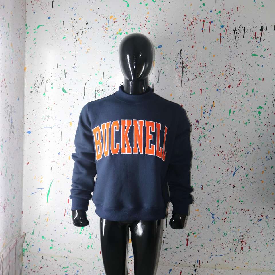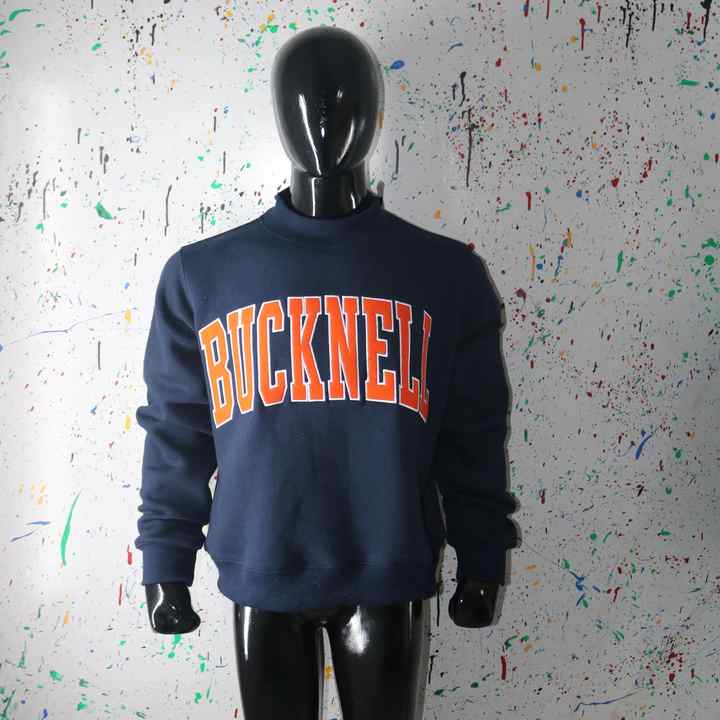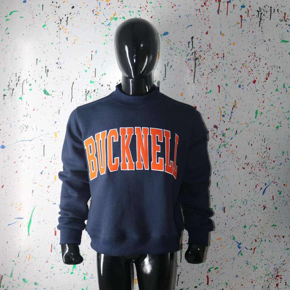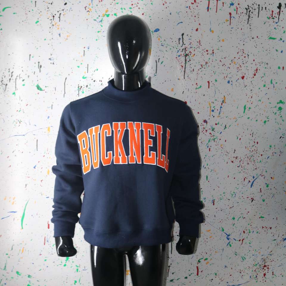 Sudadera BUCKNELL Azul Marino con Cuello Alto y Apliques Bordados en Naranja, Sudadera de Cuello Ancho CLUSH SPORTS
