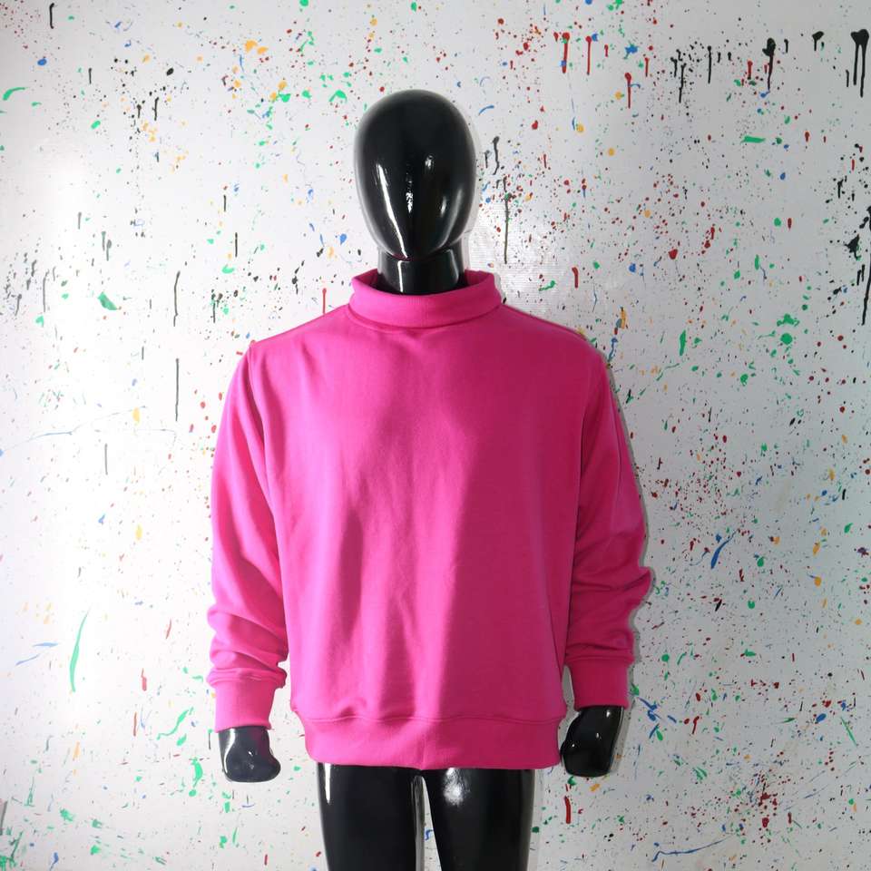 Sudadera de Felpa Rosa Intenso con Cuello Alto Simulado, 100% Algodón, Talla Grande, para Invierno, con Impresión Digital Personalizada CLUSH SPORTS