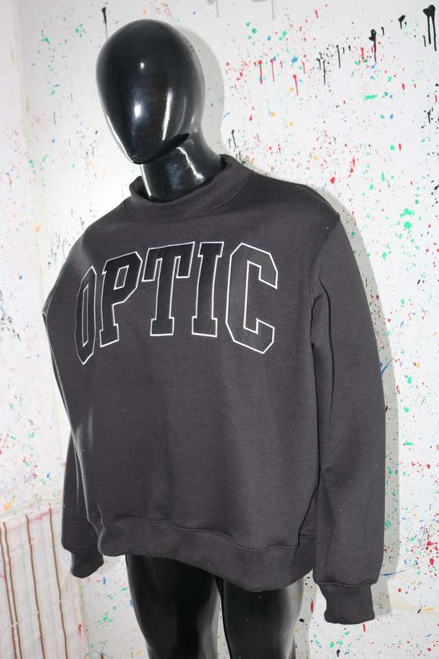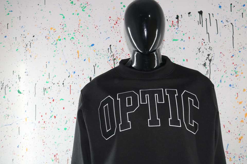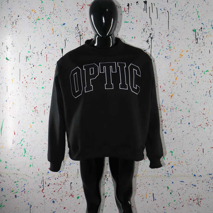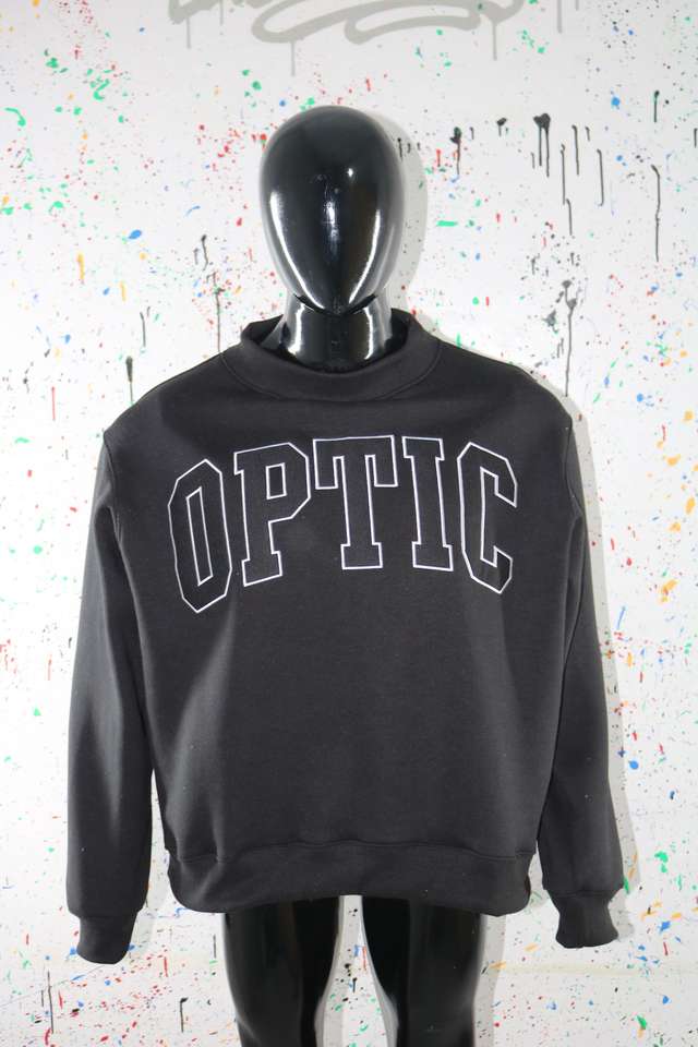 Sudadera OPTIC BLACK con cuello alto, 100% algodón, apliques bordados, cuello ancho, CLUSH SPORTS