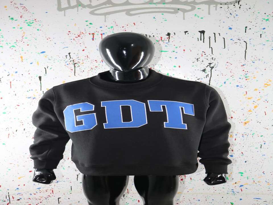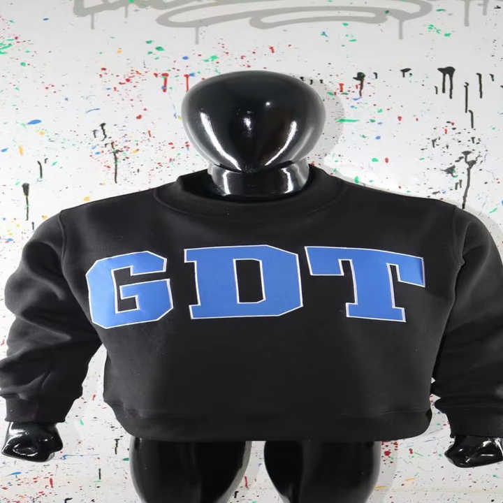 Sudadera GDT BLACK con cuello alto personalizada, 100% azul, con apliques bordados, cuello ancho, CLUSH SPORTS
