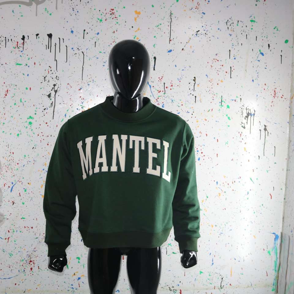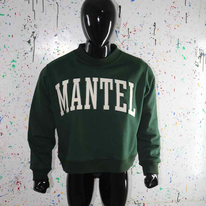 Sudadera MANTEL Verde Oscuro con Cuello Alto, 100% Blanco, Apliques Bordados, Cuello Ancho, URBAN PRODUCTIONS