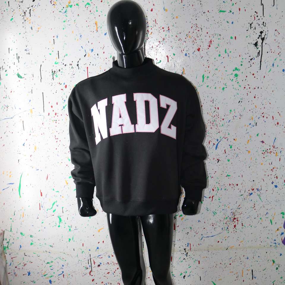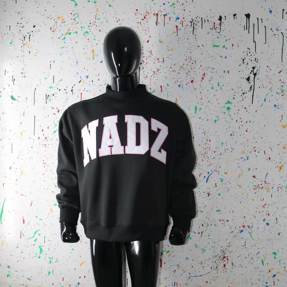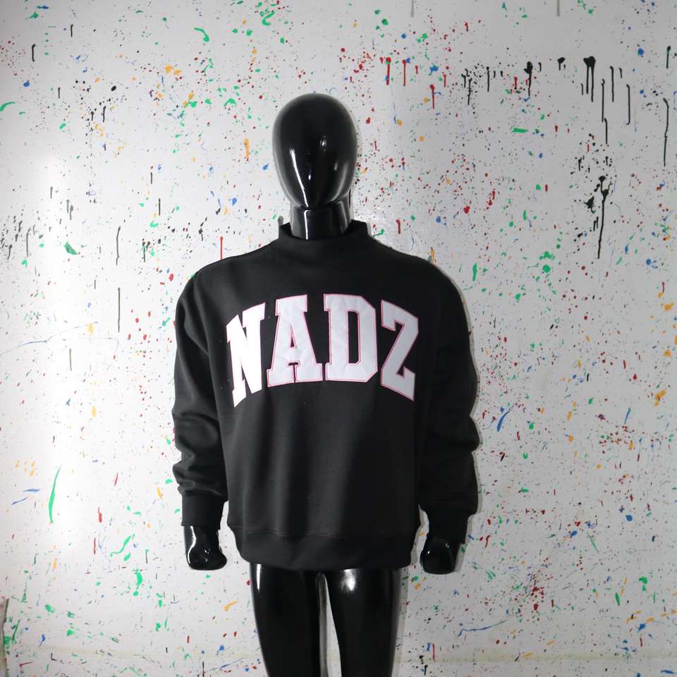 Sudadera NADZ BLACK con cuello alto, 100% blanca, con apliques bordados, cuello ancho, hilos finos.