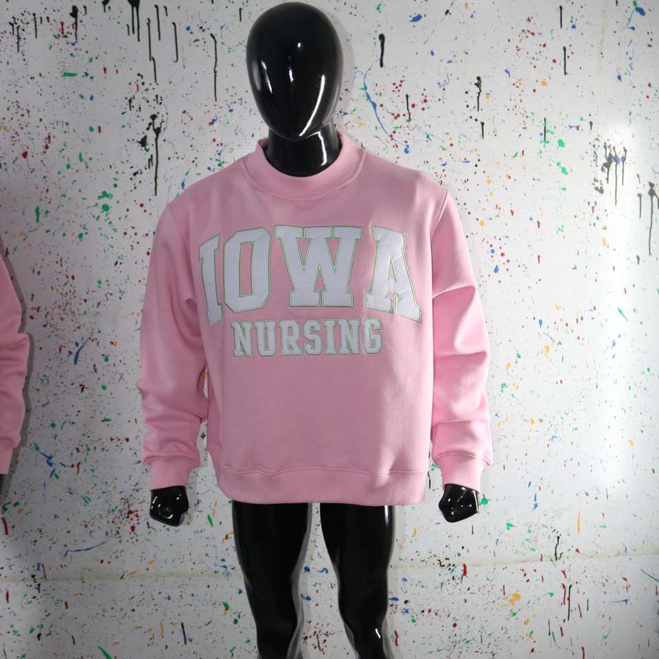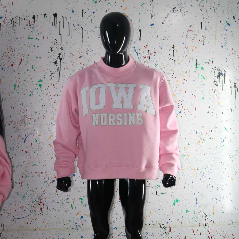 Sudadera IOWA NURSING Baby PINK con cuello alto, 100% algodón, aplique blanco bordado, cuello ancho, CLUSH SPORTS