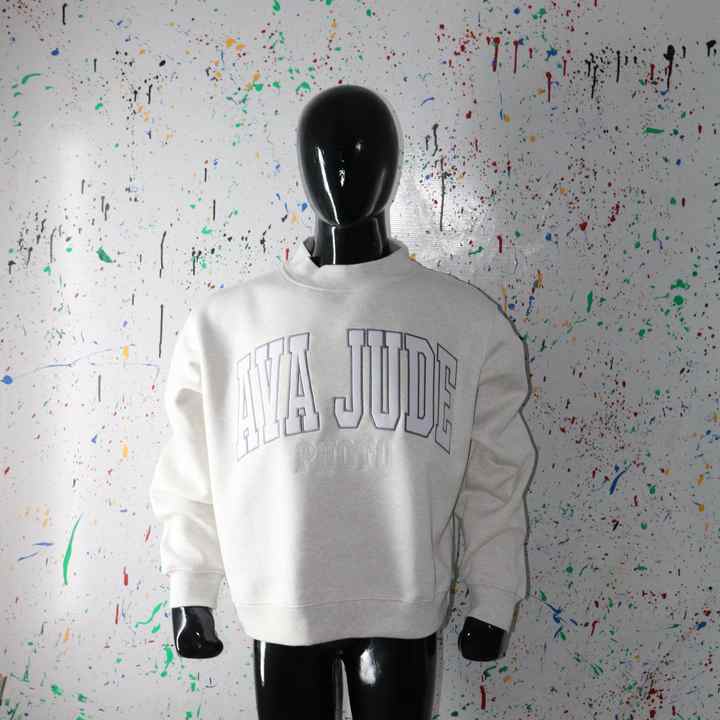 Sudadera con capucha AVA JUDE ASH GREY, hecha a medida, 100% algodón, terciopelo, media cremallera, oversize, con apliques blancos bordados, para invierno.