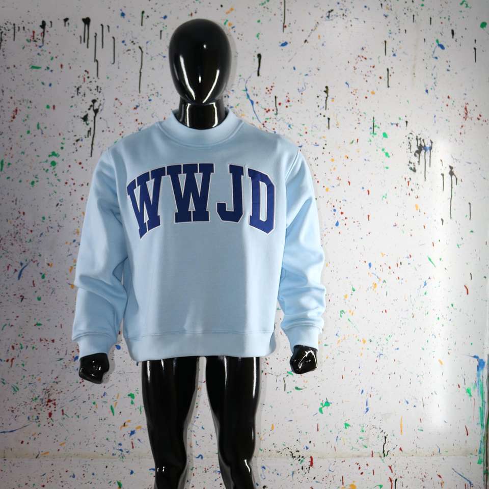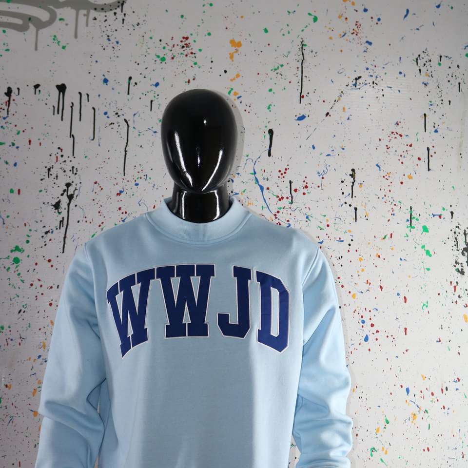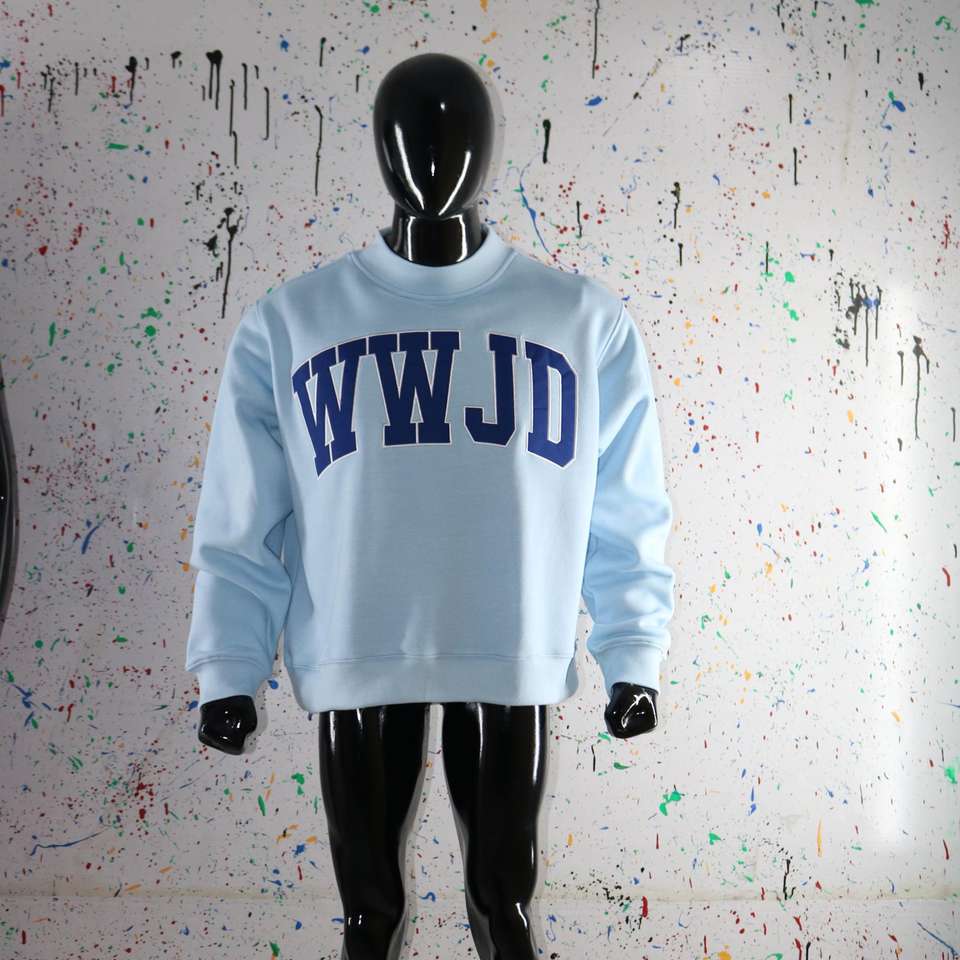 Sudadera con cuello alto color azul cielo, sudadera con cuello ancho y bordado en azul marino, CLUSH SPORTS