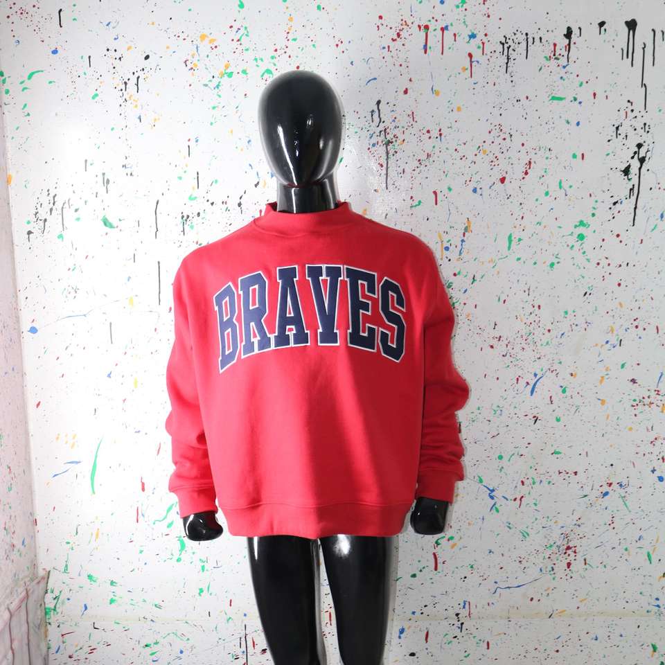 Sudadera BRAVES RED con cuello alto y apliques bordados en azul marino, cuello ancho, CLUSH SPORTS