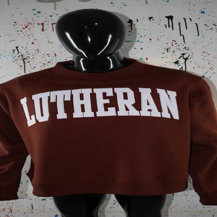 Sudadera con Capucha Personalizada LUTHERAN Color Granate, 100% Algodón, Apliques Bordados, Invierno, CLUSH SPORTS