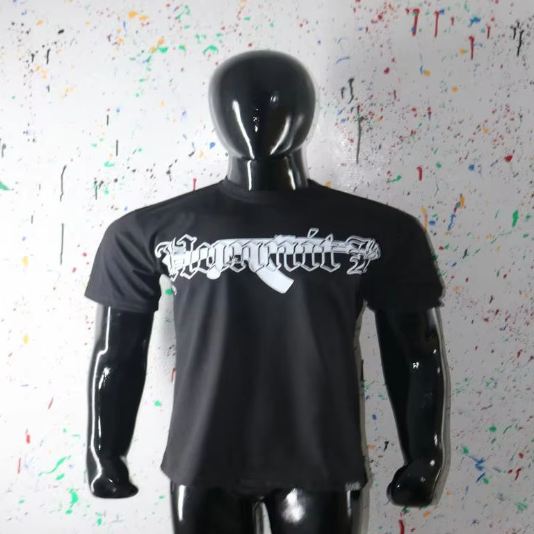 Camiseta negra serigrafiada 100% algodón 250 GSM con impresión de logotipo personalizado para hombre, tallas estándar americanas, envío DDP.
