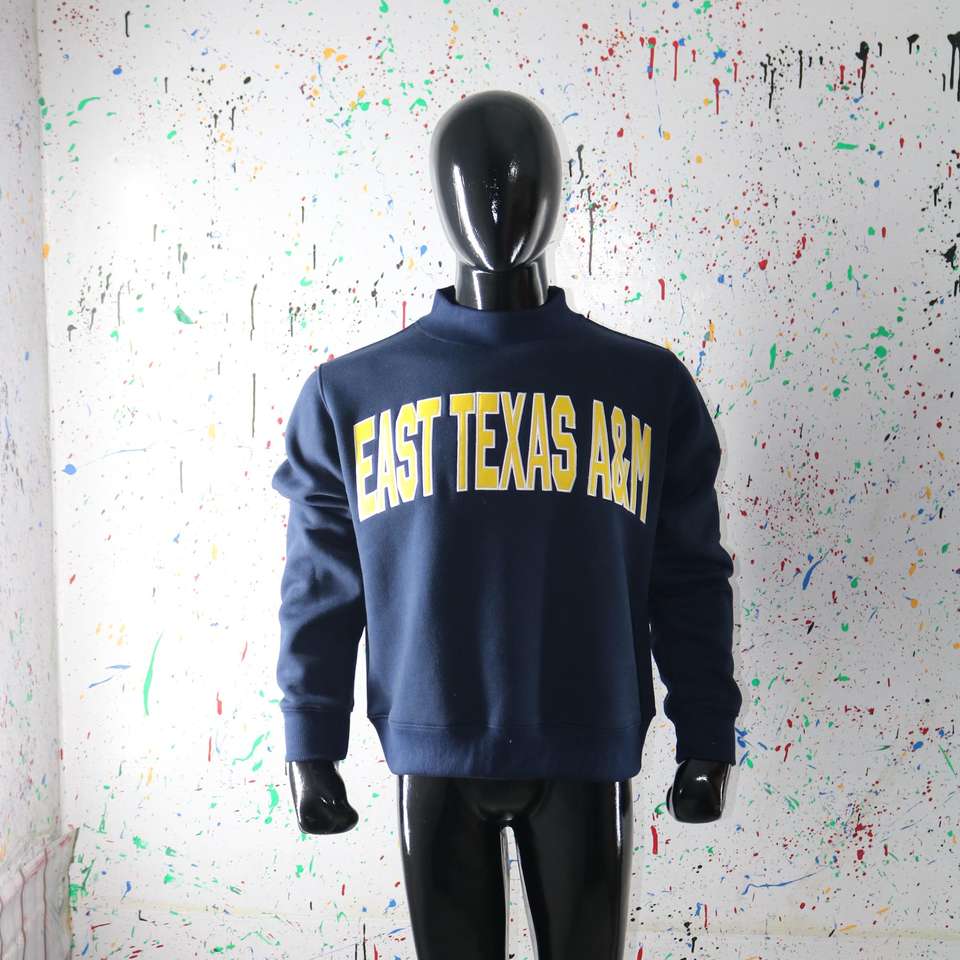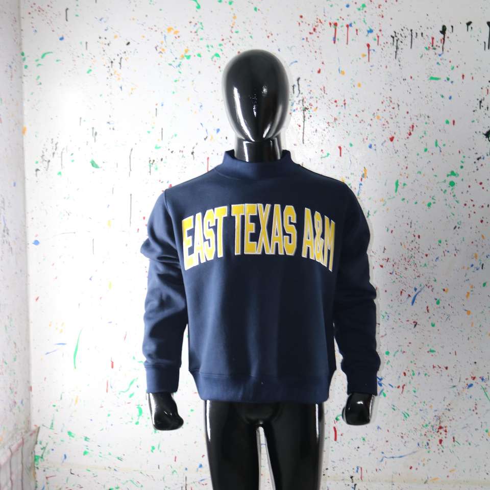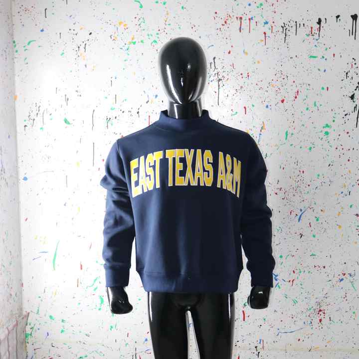 Sudadera de cuello alto azul marino de EAST TEXAS A&M, 100% algodón, con apliques amarillos bordados, cuello ancho, URBAN PRODUCTIONS