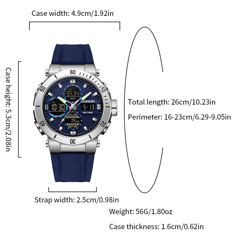 SANDA 6191, cronómetro deportivo multifunción, reloj electrónico LED para hombre, relojes digitales para hombre, reloj resistente al agua de 50M para hombre