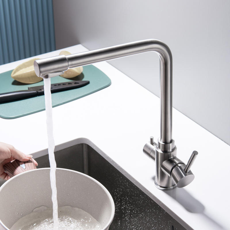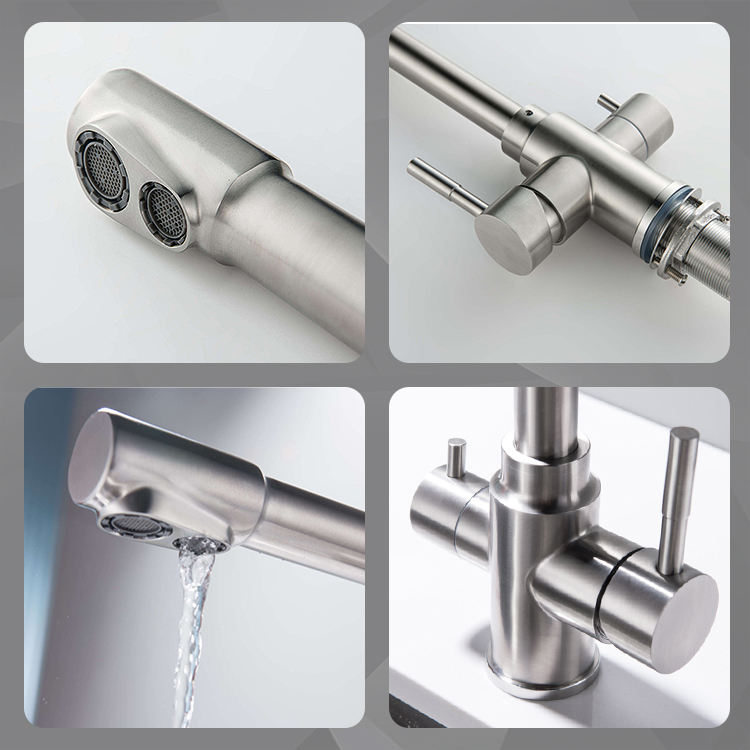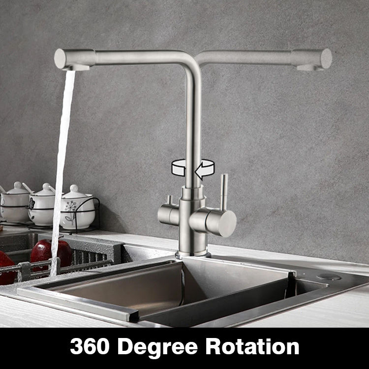 SANIPRO - Grifo Mezclador de 3 Vías de Acero Inoxidable 304 con Rotación de 360 Grados, Purificador de Agua Potable, Grifo de Cocina