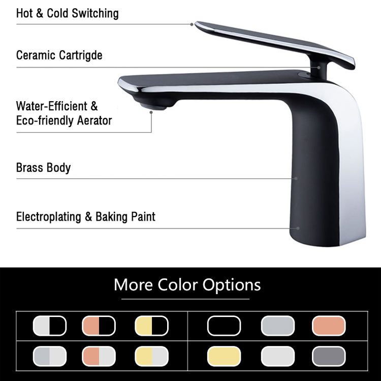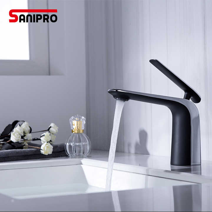 SANIPRO, grifo de agua para lavabo de Color negro plateado de un solo Mango, mezclador de lavabo de serie de lujo de latón completo, grifo de baño frío y caliente