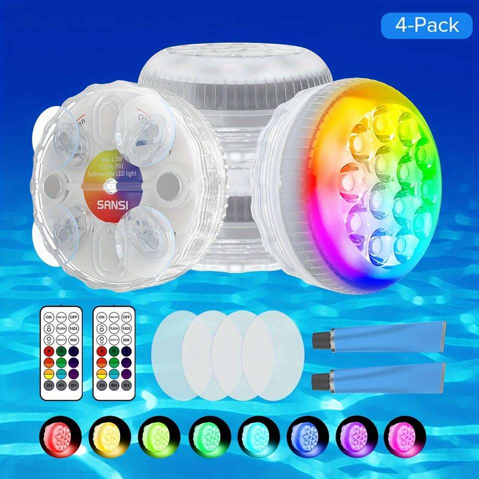 SANSI, paquete de 2/4 luces LED sumergibles con control remoto (200 pies), luces de piscina enterradas con pegamento/succión para iluminación de piscina