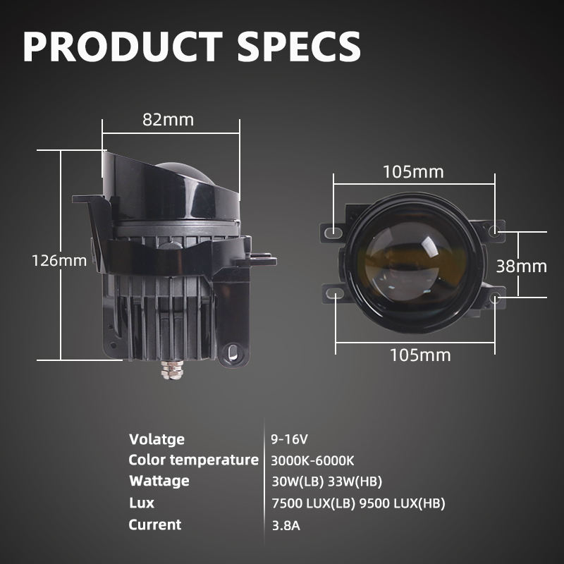SANVI AIF09 App - Faro Antiniebla LED de 3 Pulgadas con Lente Tricolor, Proyector de Luz Antiniebla, Luces de Conducción LED de Luz Alta y Baja para Honda Toyota
