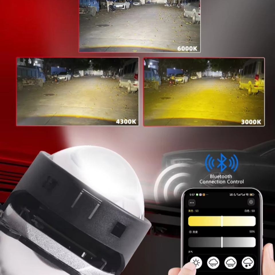 SANVI - Faro Delantero Bi-LED Ai60 con Control por Aplicación, 3 Colores, Luz Alta y Baja, 61 W, Lente de Proyector Bi-LED, Accesorios para Automóviles