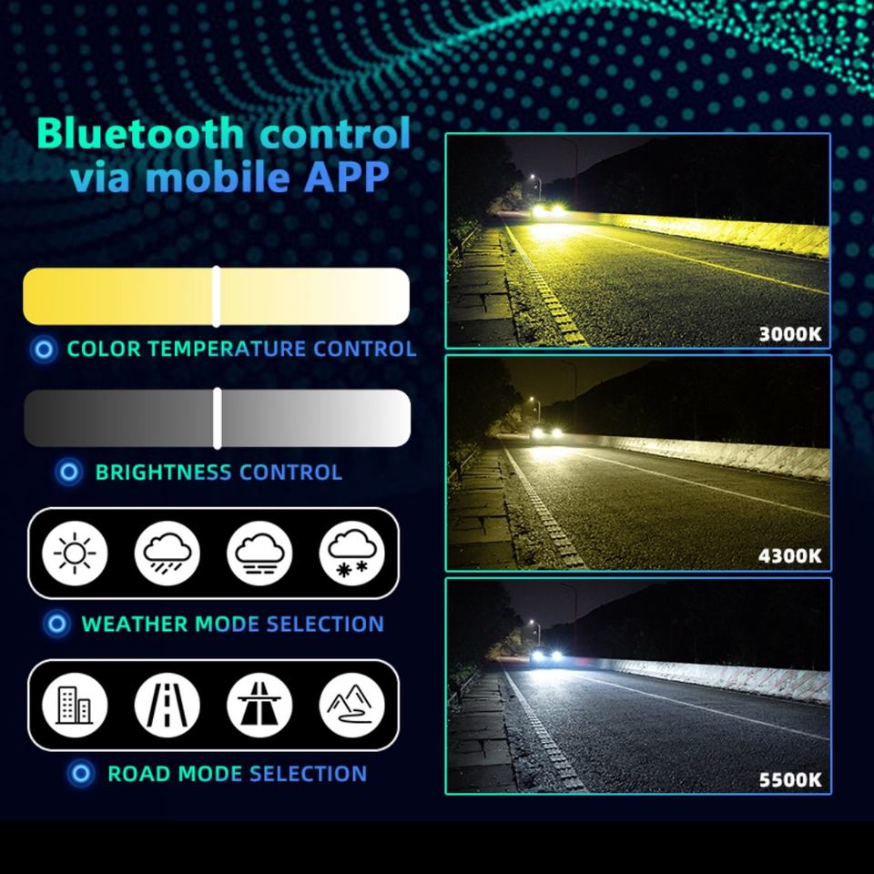 SANVI Bombillas LED para Faros Delanteros de Nuevo Diseño, Doble Color, 30000LM, 6000K-3000K, H11/H7/9005/9006, con Control por Aplicación