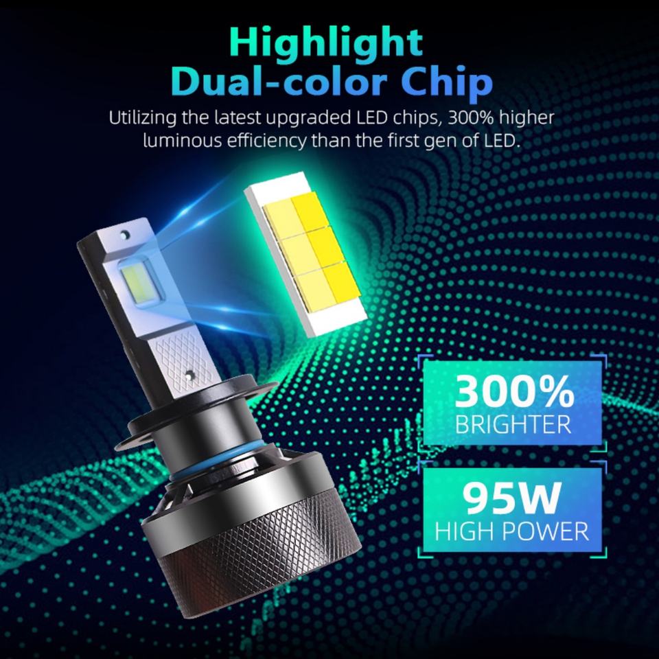 Faros LED SANVI V5 190W con Control por Aplicación Inteligente, 30000LM 6000K-3000K, Bombillas LED Plug and Play, Accesorios para Automóviles