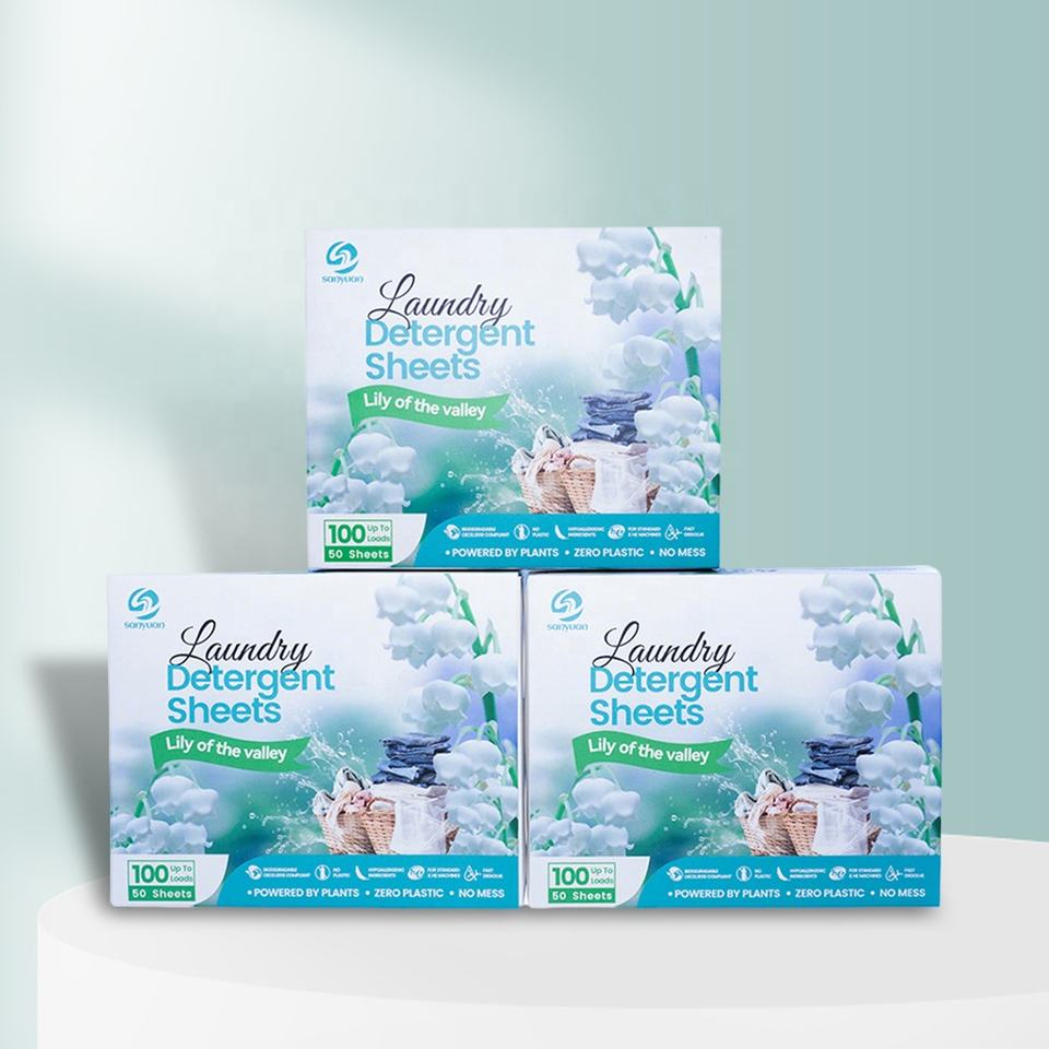 SANYUAN - Hojas de Detergente para Ropa Naturales, Biodegradables, Fuertes, Blanqueadoras, con Logotipo Personalizado, Tiras de Lavandería, Tabletas de Lavandería