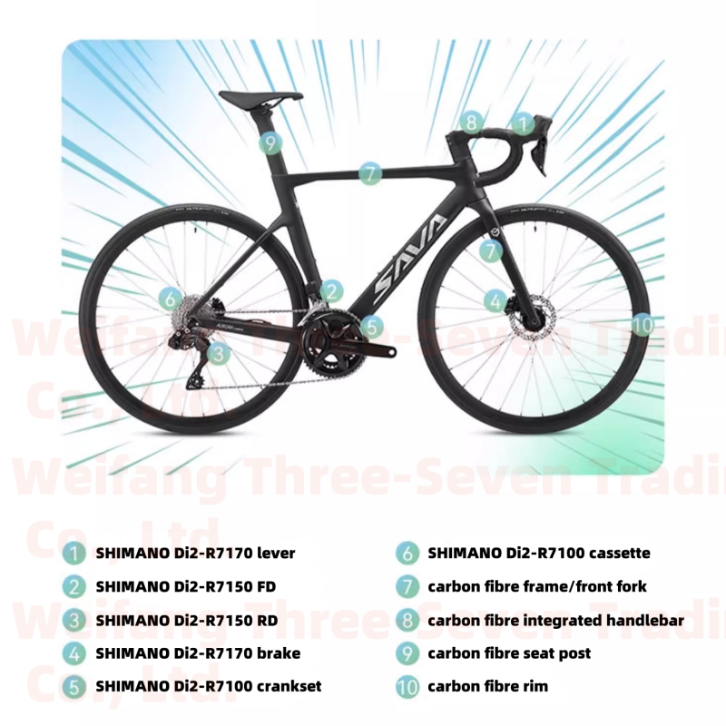 Bicicleta de Carretera SAVA AURORA R7 de Fibra de Carbono, 105 7170, Cambio Electrónico de 24 Velocidades, Freno de Disco Hidráulico, Bicicleta de Carreras con Cableado Interno 7100 7150