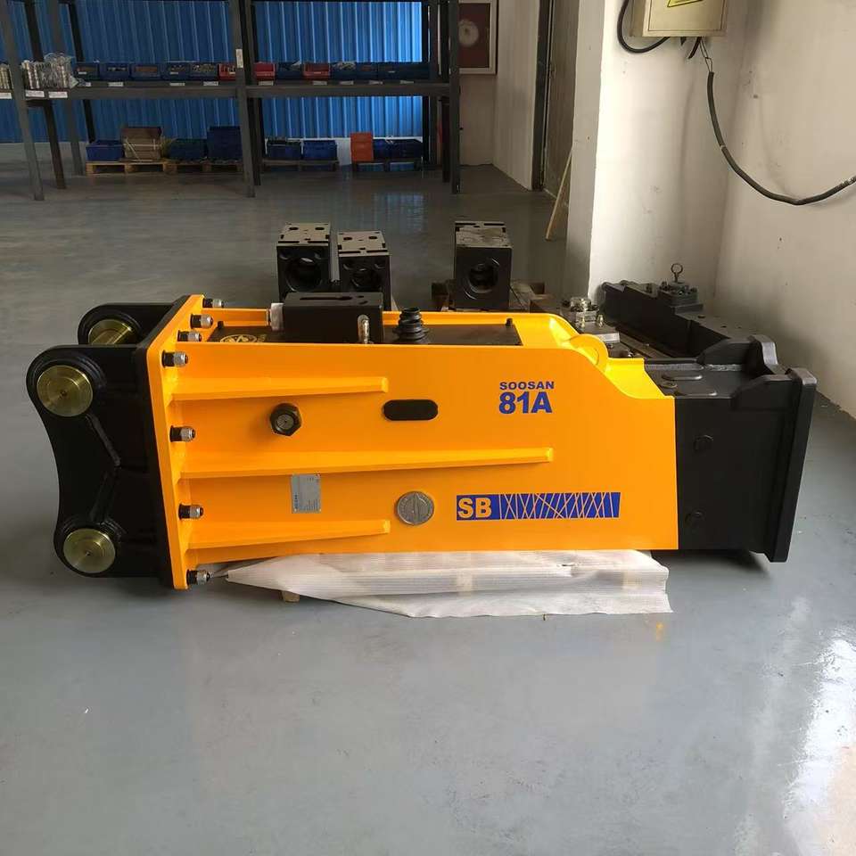 Martillo hidráulico SB81A tipo caja SOOSAN con acumulador para excavadoras de 18-26 toneladas con caja de herramientas de repuesto.