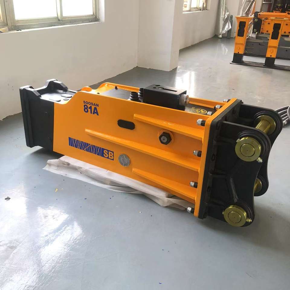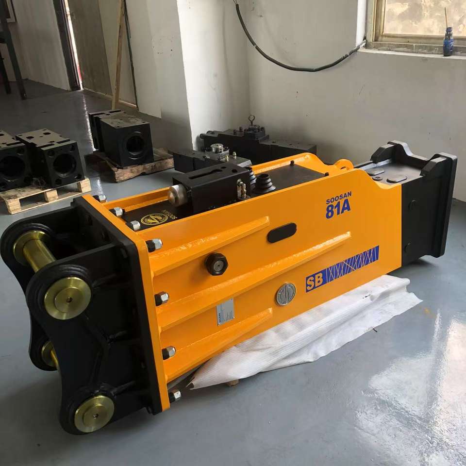 Martillo hidráulico tipo caja SB81A SOOSAN con acumulador para excavadoras de 18-26 toneladas con caja de herramientas de repuesto.