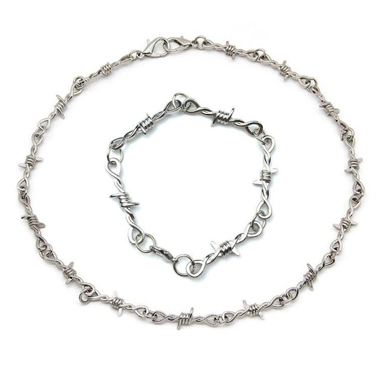 Nombre del producto:Collar de Cadena con Espinas de Alambre de Púas Gótico